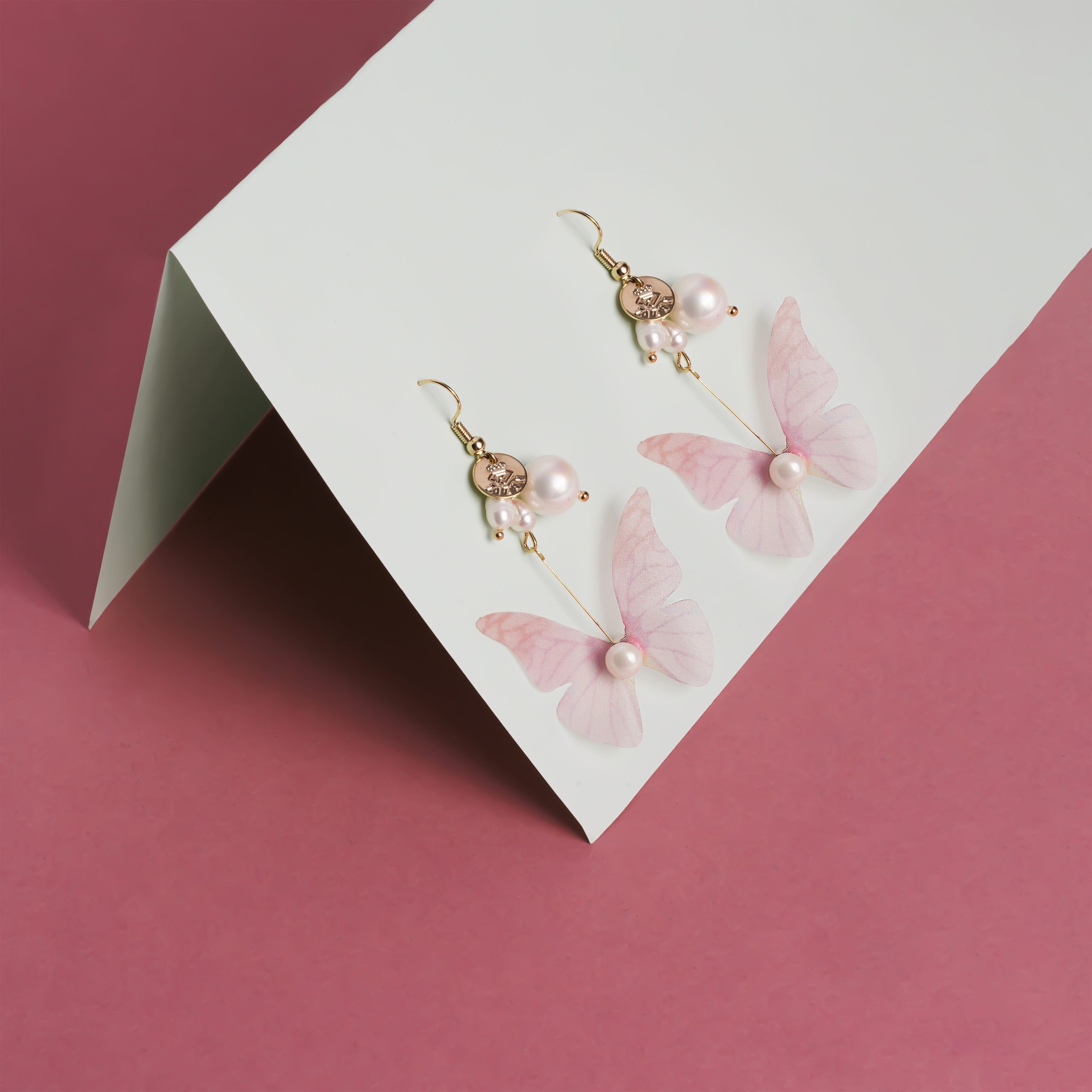 Crepe Pink Butterfly Earrings quantity